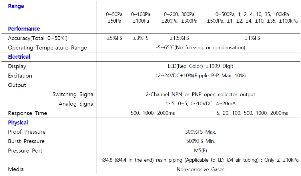 - ÃøÁ¤¾Ð·Â¹üÀ§ : 50Pa ... 100kPa